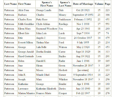 Entries from Hendricks County Marriage Book Volume 31 (1 November 1968 - 2 February 1970) have been added to the database Index to Hendricks County Marriage Books, which is on the Hendricks County GenWeb site. This index includes the names of the bride and groom, their date of marriage and the corresponding book and page number. It is an ongoing project--so far it covers the period of 1904-1970, as well as 1824-1848.